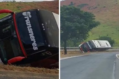 Foto: Ônibus da TransNeres Fonte: Mídias Sociais No domingo (8 de junho), um ônibus turístico BR-381 virou em Governador Valadares, no Vale Riodoso. Havia 35 passageiros a bordo quando o carro sai...