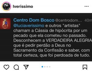 Post do Instagram da atriz Lúcia Veríssimo rebatendo opressores.