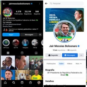 Ex-chefe do executivo, Jair Bolsonaro passou a se identificar como ex-presidente em todas as suas mídias digitais após 13 dias da posse do presidente Luiz Inácio Lula da Silva (PT). Em todas as suas redes sociais o ex-presidente ainda se identificava como: ‘Capitão Paraquedista do Exército Brasileiro. Presidente da República Federativa do Brasil. Candidato à reeleição com o número 22’.