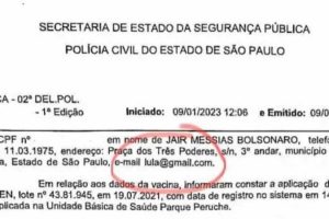 O jornal afirma que o uso de um e-mail com endereço contendo a palavra “lula@gmail.com” chamou a atenção da prefeitura. Uma reprodução de documento da PF mostra que foi usado o e-mail “lula” para fazer o registro da vacinação falsa atribuída a Jair Bolsonaro.