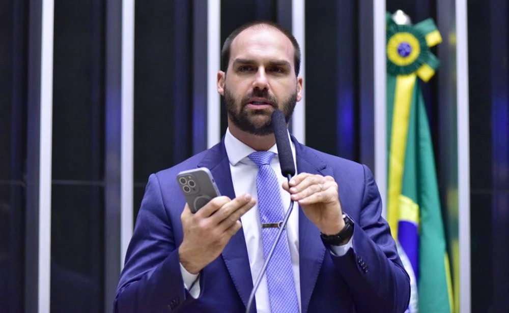 No pedido, o Ministério Público menciona publicações de Eduardo Bolsonaro a especialistas sociais e declarações a mitjans estrangeiros como prova de alegações de coação por parte de um funcionário público.